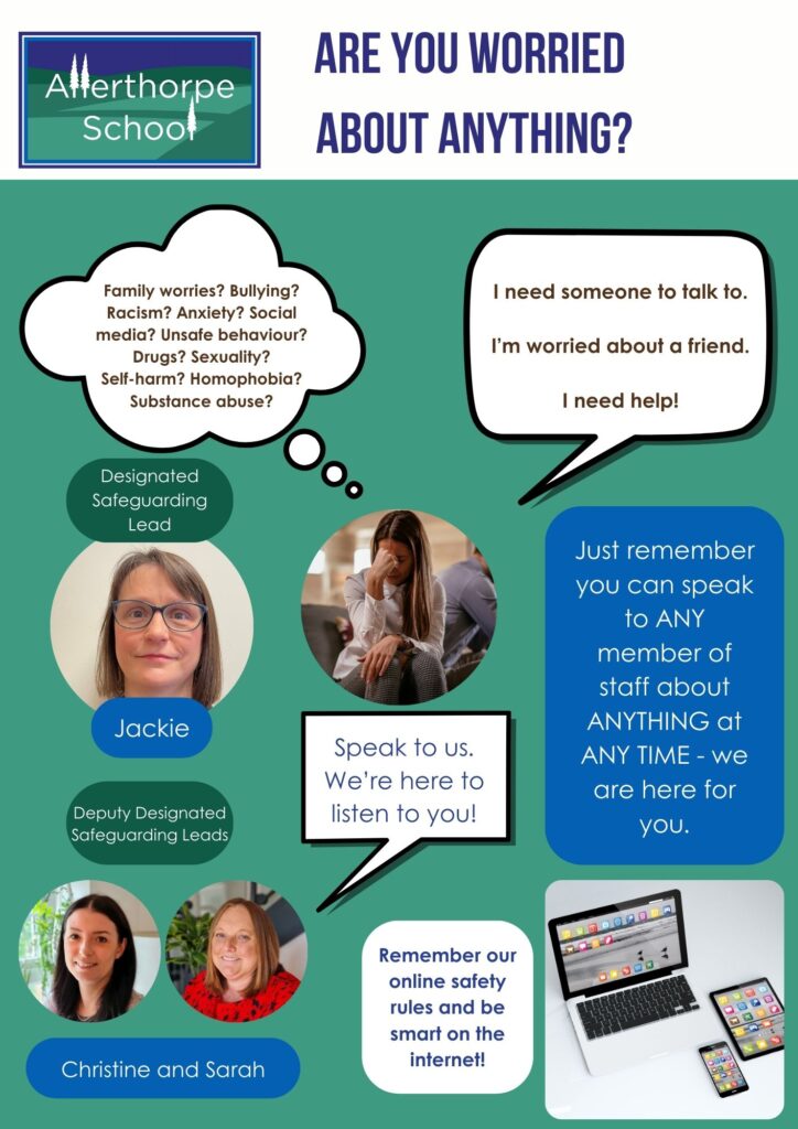 - We are here to listen to you, if you have any concerns please contact us on 01759 205105 during school hours, or use the contact details on Meet the Safeguarding Team document which can be downloaded below.