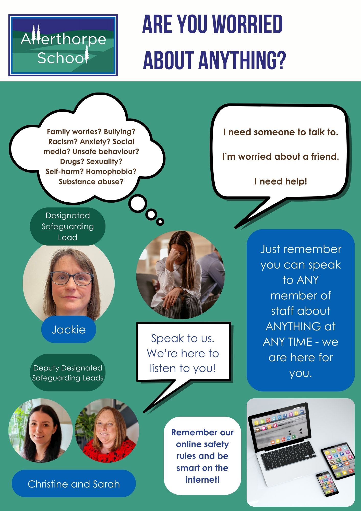 - You can talk to any adult in the school about anything. Do not keep your concerns to yourself; nothing is too small or too big.